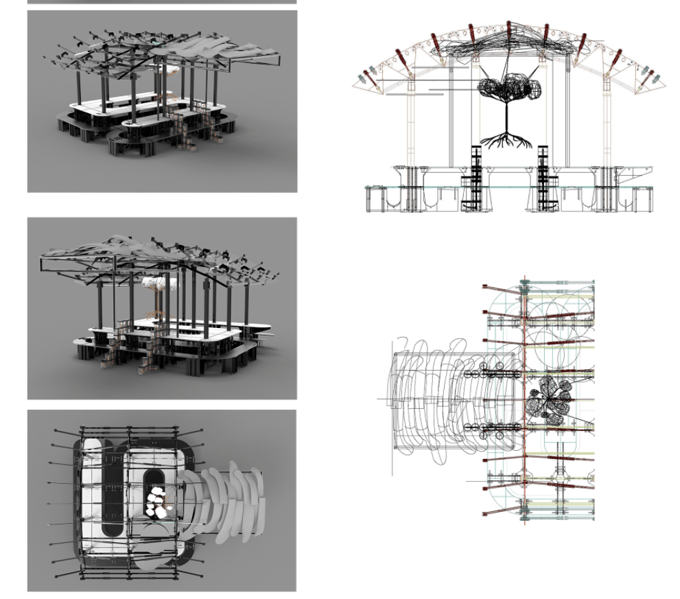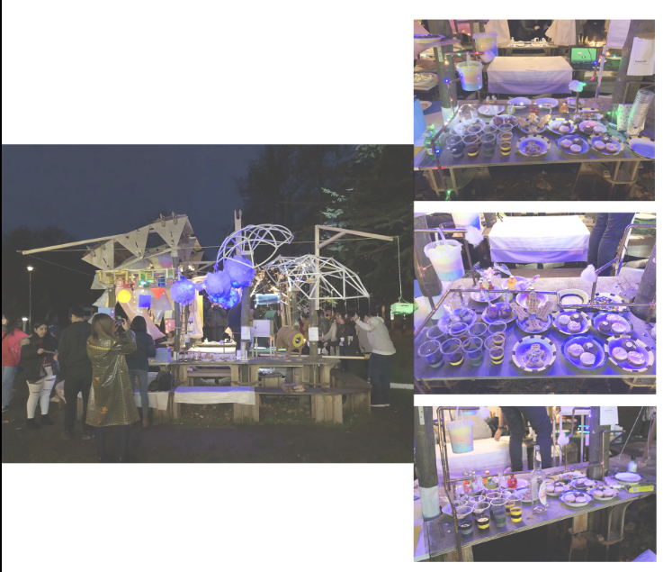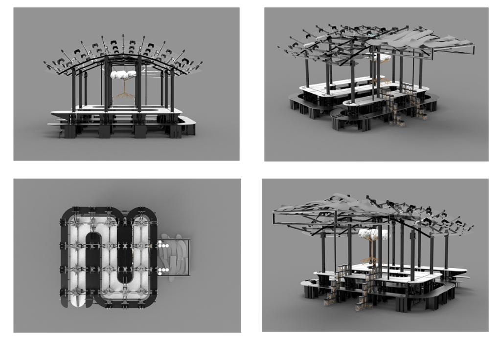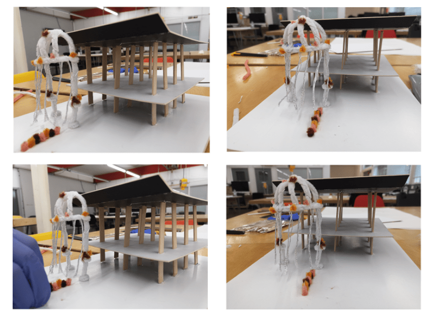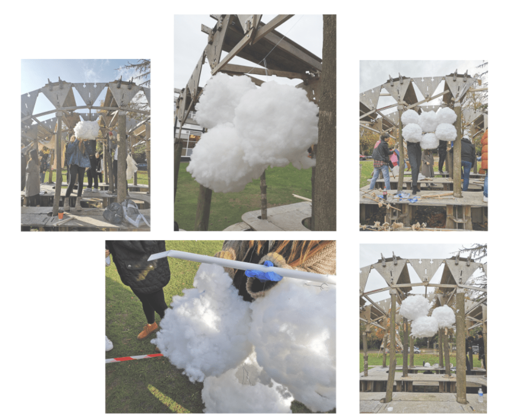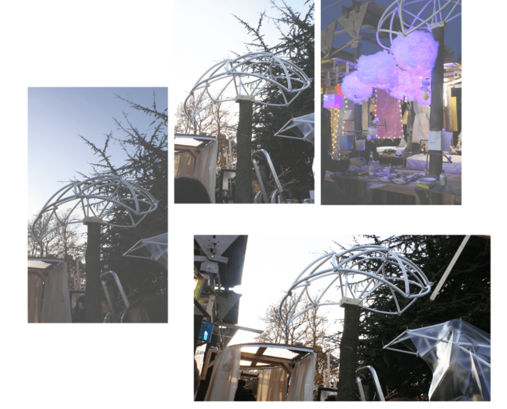 In the initial design, we designed a canopy for the top of the forest table, one reason being to keep out the rain and protect the fragile clouds. The second reason is beauty.However, after later discussion with the tutor, we cancelled this at the tutor’s suggestion.